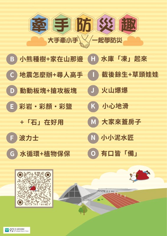| 標題 | 轉知~國立自然科學博物館敬邀貴校參加921地震教育園區 (下稱園區)114年到校服務「牽手防災趣- 大手牽小手、一起學防災」專案活動 |