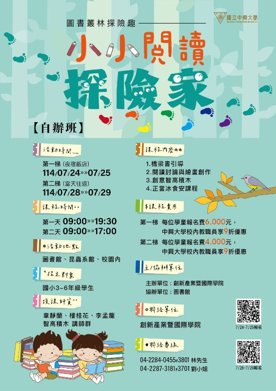 | 標題 | 轉知~國立中興大學「小小閱讀探險家」營隊 |
