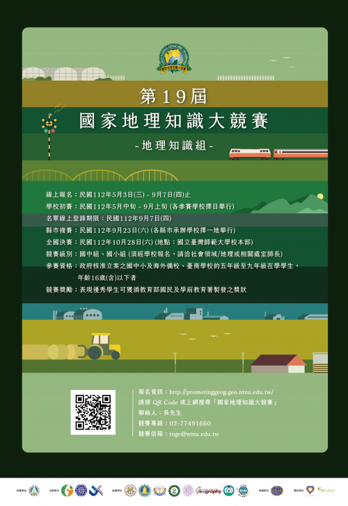 | 標題 | 轉知-中華民國地理學會辦理112年第19屆國家地理知識大競賽之競賽辦法1份 |