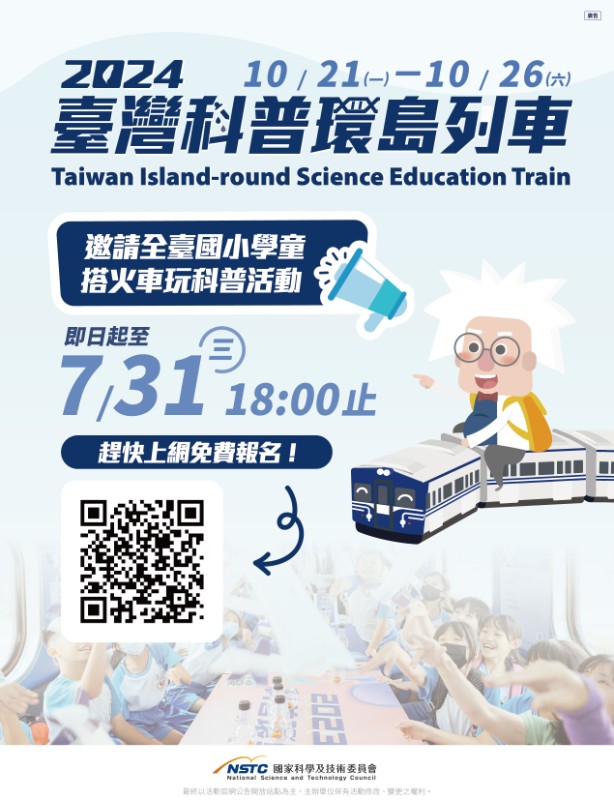 為將科學知識轉化成易懂的動手做實驗,激發小學生對科學的好奇探索心,國科會自105年起舉辦「臺灣科普環島列車」,每年均引發熱烈迴響,邀請全臺國小5-6年級學生搭乘「2024年臺灣科普環島列車」,於列車上動手體驗科普實驗,以及在火車站的科普攤位學習科學知識及在地文化。 |