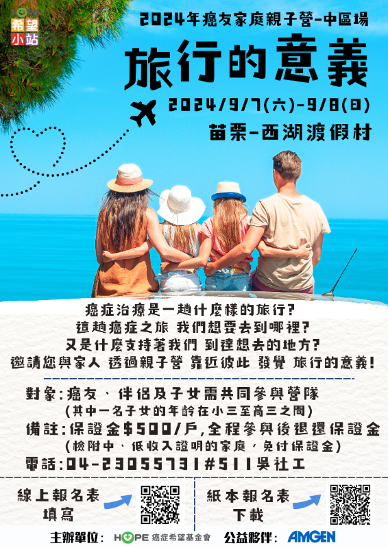 轉知財團法人癌症希望基金會「2024年癌友家庭親子營」活動資訊