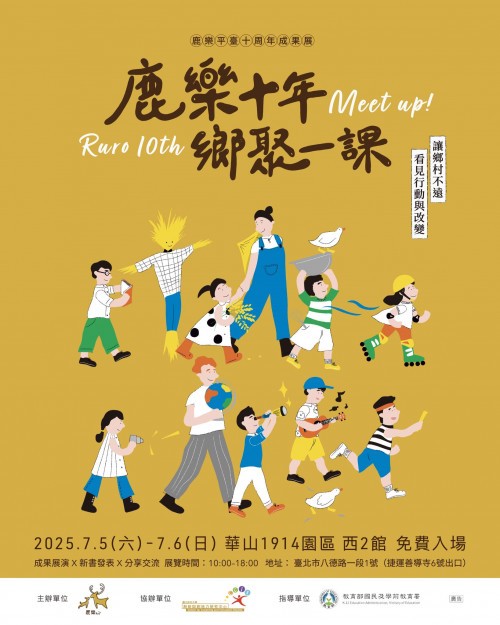 一、依據教育部國民及學前教育署114年6月23日臺教國署國字第1140061194號函辦理。 二、教育部國民及學前教育署為提供學生多元適性學習機會,協助偏遠地區學校引入多元教學資源,爰請國立政治大學協助建置「鹿樂—偏鄉教育群眾協力募集平臺」(下稱鹿樂平臺),以促成偏遠地區學校與社會大眾、企業團體組織合作,提供學校及學生多元發展機會,營造城鄉交流、共好之環境。 三、有關旨揭「十週年成果展暨鹿樂專書發表活動」,相關資訊摘要如下: (一)活動目標: 1.本次活動係為呈現「鹿樂平臺」自104年啟動以來,10年間於偏遠地區學校與社會大眾、企業團體及組織協力之典範案例與豐碩成果。 2.透過本次活動,期能展現臺灣偏鄉教育之發展軌跡與未來展望,並擴散其所帶動之正向教育影響力。 (二)活動內容:分享交流會、歷年成果展示、志工經驗分享及合作學校成果展演等。 (三)活動日期及時間:114年7月5日(星期六)至7月6日(星期日),上午10時至下午6時。 (四)活動地點:華山1914文化創意產業園區西2館(臺北市中正區八德路一段1號)。 (五)鹿樂平臺網站:https://ruro.k12ea.gov.tw/。 四、檢附活動流程及海報各1份。 五、本案倘有疑問,請逕洽國立政治大學鹿樂平臺吳小姐:連絡電話:(02)2939-3091轉65711,電子信箱:ruro@ruro.tw。