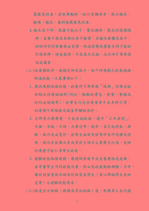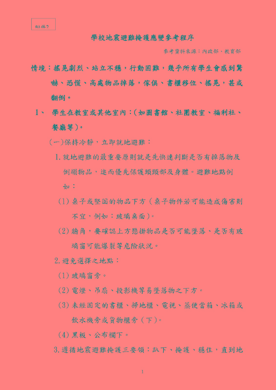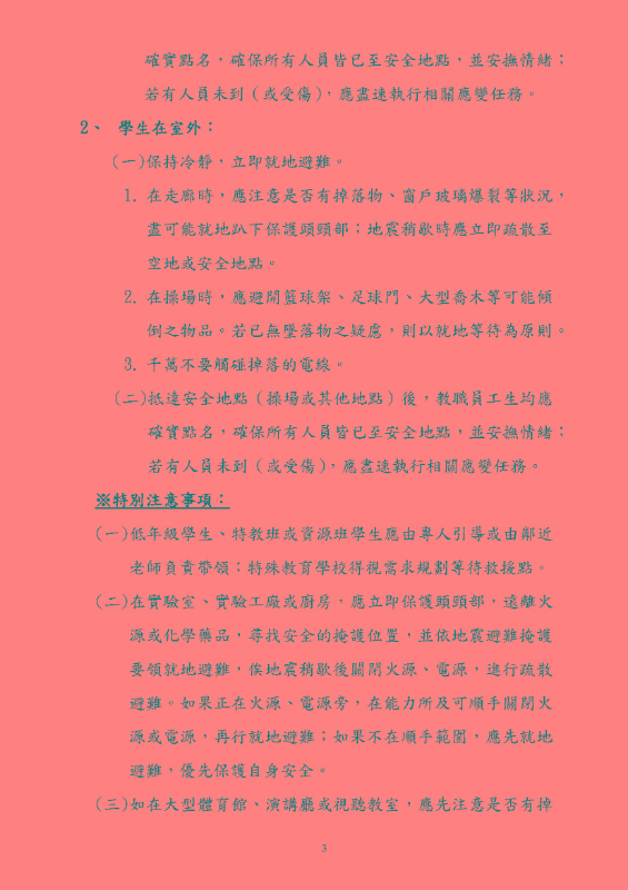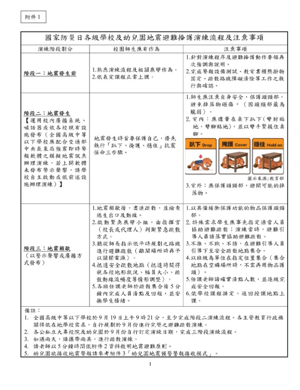 114年度國家防災日宣導資料,請大家詳閱並轉知家長及孩子正確避難方式。
