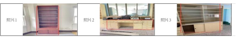 五、物品說明(實物相片) 1.本項拍賣品為報廢品,因購置年代久遠,可使用狀況請買家自行判斷。 2.本項拍賣品包含書櫃(圖片1.每張100元)有12張、書櫃(圖片2每張300元.) 有1張200元、書櫃 (圖片3. 每張200元)有2張,共計書櫃15張。 3.本單位不負拍賣品之瑕疵擔保責任與保固責任,且領貨後無法換貨及退貨。 4.本拍賣品非新品,依現況現狀交貨,請買家深思後再購買,如需瞭解實物現狀,請先電話預約後至交貨地點看貨。