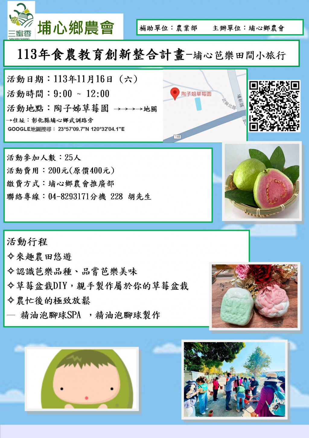 113年度食農教育創新整合計畫-「埔心芭樂田間小旅行」食農教育推廣活動 |