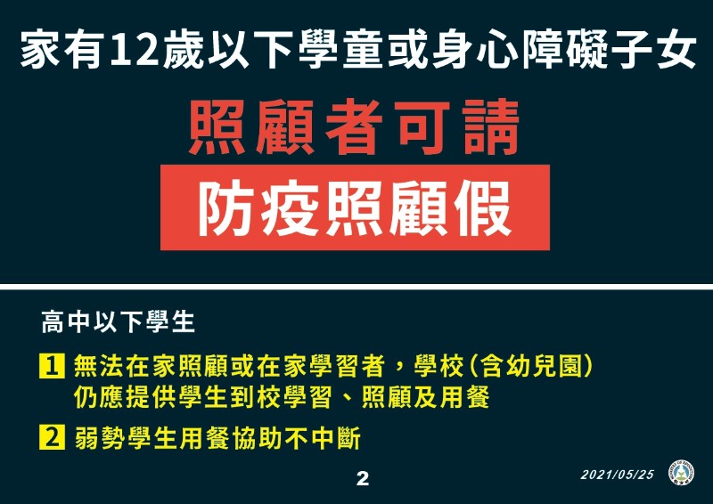 公告內容 一、 依據教育部110年5月25日新聞稿辦理。 二、 停課期間:原為110年5月19至28日,延 長至110年6月14日止。 三、 停課對象:高中職以下各級學校機構(含補習班、幼兒園、安親 班、課後照顧中心)。 四、 因應全國實施疫情警戒第三級時間延長,為降低群聚感染之風險,維護學校師生健康及學習權益,全國各級學校及公私立幼兒園停止到校上課延長至110年6月14日(一)止;兒童課後照顧服務中心、補習班等各類教育機構亦請所有學生停止前往,留在家中學習。相關支援與配套如下: (一) 高中以下學校畢業生之畢業考、期末考與補考:國小六年級、國中九年級及高中三年級學生之畢業考、期末考與補考,各校可採多元方式進行評量。 (二) 畢業典禮停止辦理:為持續落實防疫工作,請各級學校及公私立幼兒園畢業典禮配合停辦,如需辦理,採線上轉播方式辦理,避免不必要之移動、活動或集會。 (三) 家長服務:延長停止到校期間,若家中有12歲以下學童及身心障礙子女需照顧者,家長可請「防疫照顧假」;高中以下學生(含幼兒園)之家長因故無法在家照顧或學生無法進行居家學習者,學校(含幼兒園)仍會安排人力,提供學生到校學習、照顧及用餐;居家線上學習期間,也將持續強化弱勢學生關懷機制,讓用餐協助不中斷。 (四) 線上教學採多元彈性方式:教師得視學生年齡階段,以同步視訊、非同步預錄影片、線上學習資源、徵用頻道、通訊軟體進行課程作業指導等方式,均可視為教師進行 課程教學之工作內容。 1. 教育部持續擴充線上教學與學習輔助資源,包含於教育部因材網YouTube頻道擴充各類課程之單元學習資源,國家教育研究院與台達電子文教基金會合作開發「DeltaMOOCx台 達磨課師」YouTube頻道,提供高中數學、物理、化學、生物、地球科學等五學科學習資源,以及技術型高中數學和電機與電子群科的核心科目學習資源。 2. 每日於公視3台播放之「疫起線上看」教學節目,自今日(25日)起於台視綜合台隔日上午重播,透過不同時段搭配,提供師生更多居家學習管道。 3. 教師如在線上遠距教學遭遇視訊軟體、線上教學技巧、線上教學資源等問題,除可參考「教育部線上教學便利包」外,亦可加入臉書「台灣線上同步教學社群」,依照「主題」查詢輔助資源或尋找諮詢協助。 (1) 教育部「線上教學便利包」:https://learning.nchu.cloud.edu.tw/onlinelearning/ (2) 臉書「台灣線上同步教學社群」:https://www.facebook.com/groups/1011192722620224/ (3) 「DeltaMOOCx台達磨課師」YouTube頻道:https://www.youtube.com/channel/UCyDIP-h6xNBAiXITkbvubhA/videos (五) 國中教育會考:大陸考場暨補行考試之辦理,仍於110年6月5日及6日舉行,並於6月11日寄發國中會考成績單,另高級中等學校及五專各入學管道之相關招生作業,亦依據修正後之日程表配合辦理。 (六) 教職員工出勤管理及教師授課形式:全國高級中等以下學校因應疫情停止到校,進行居家線上學習。有關教職員工(含兼行政職務教師、兼任及代理教師)出勤管理及教師授課形式,在維持基本校務運作及線上學習需要之前提下,仍採彈性、從寬處理原則。 五、 防疫相關資料隨時更新,請逕至衛生福利部疾病管制署網頁/傳染病與防疫專題/傳染病介紹/第五類法定傳染病/嚴重特殊傳染性肺炎/疾病資訊項下(網址:https://www.cdc.gov.tw/Disease/SubIndex/N6XvFa1YP9CXYdB0kNSA9A)下載參閱。 六、 本案視疫情隨時滾動修正。 七、 以上如有疑義請洽各科業務承辦人員 (一)校園防疫業務:體健科/蘇小姐04-7112175#46 (二)學校午餐業務:體健科/郭小姐04-7112175#47 (三)游泳教學業務:體健科/尤小姐04-7112175#44 (四)幸福餐券業務:體健科/馬先生 04-7112175#26 (五)校園禁止開放業務:國教科/楊小姐04-7531830 (六)學校停課、補課業務:學管科/鄭小姐 04-7531861 (七)社區大學業務:社教科/蕭小姐 04-7531844 (八)補習班業務:社教科/陳先生04-7531843 ;粘先生04-7531928 (九)樂齡中心業務:家庭教育中心/王先生04-711036#11 (十)公私立幼兒園(含非營利幼兒園業務):幼教科/孫老師 04-7531853 (十一)學校社團業務:學特科/林老師04-7531820 (十二)畢業典禮:學管科/許老師04-7531826 (十三)國中教育會考:學管科/許小姐 04-7531874 附加檔案 1100525因應疫情停課居家線上學習QA.pdf 110年5月25日_教育部通報.pdf 停止到校上課延長至0614.jpg 國中教育會考.jpg 畢業典禮畢業考.jpg 線上教學資源.jpg 防疫照顧假.jpg
