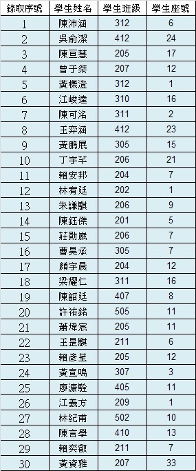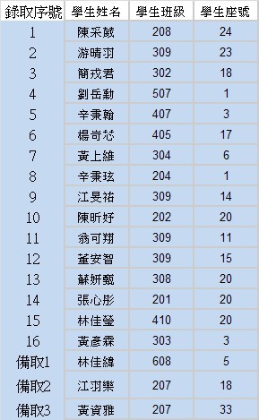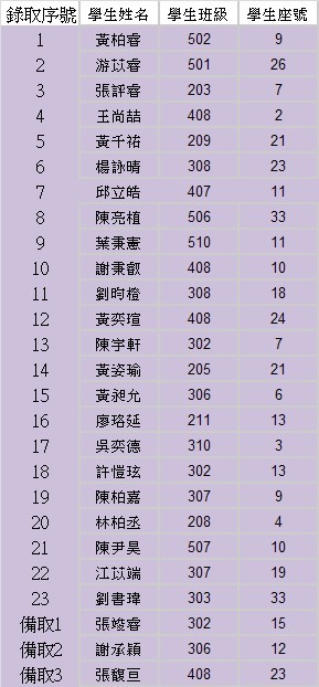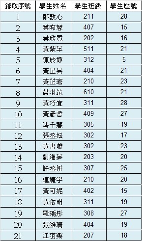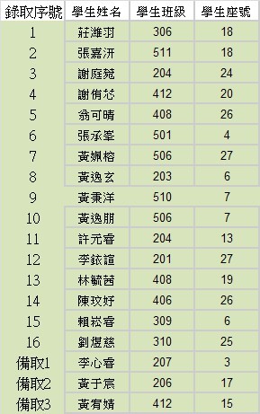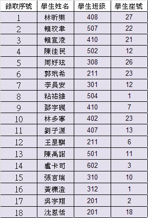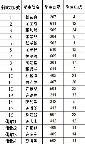 | 標題 | 公告:星期三『已額滿』社團之錄取名單 + 新增公告名單 |