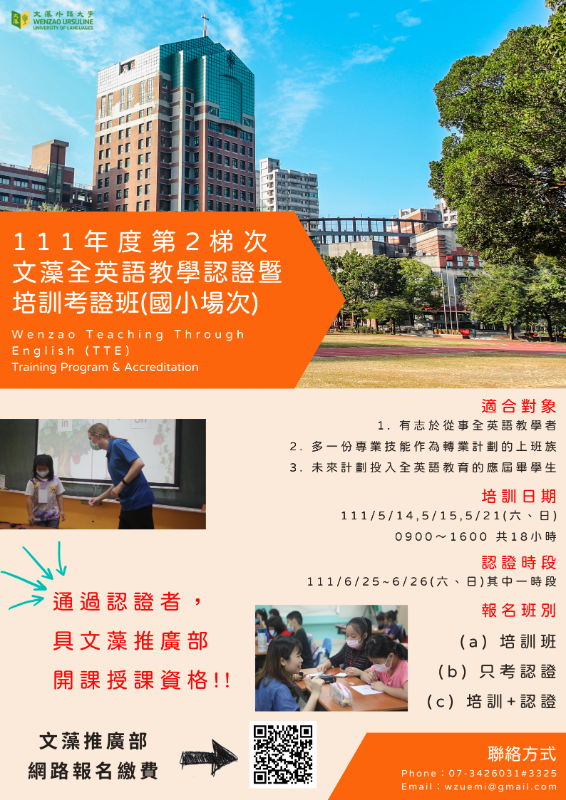 | 標題 | 轉知:文藻外語大學開辦全英語教學認證與培訓課程 |