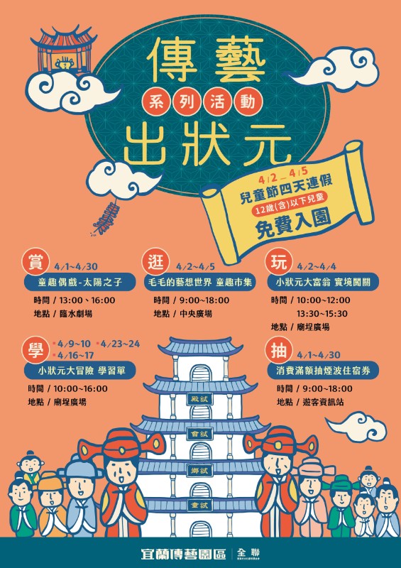 | 標題 | 傳統藝術中心宜蘭傳藝園區自111年4月2日至4月24日舉辦「傳藝出狀元兒童節系列」活動 |