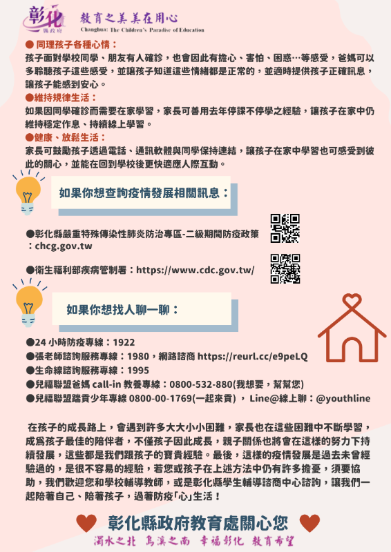 彰化縣政府親師生溫暖及關懷支持安心文宣-歡迎下載