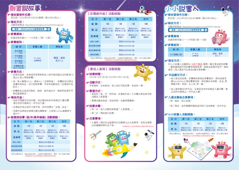 | 標題 | 2022 FunPark創意說故事數位繪本創作大賽 -「反毒創作組」 |