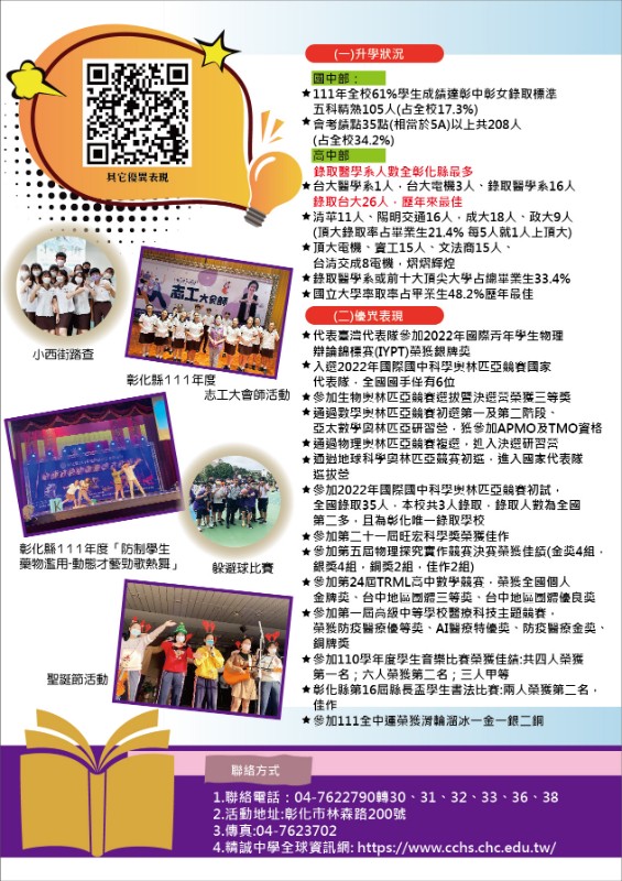 活動簡章可至該校網頁(https://www.cchs.chc.edu.tw/)下載使用或至本校傳達室索取。