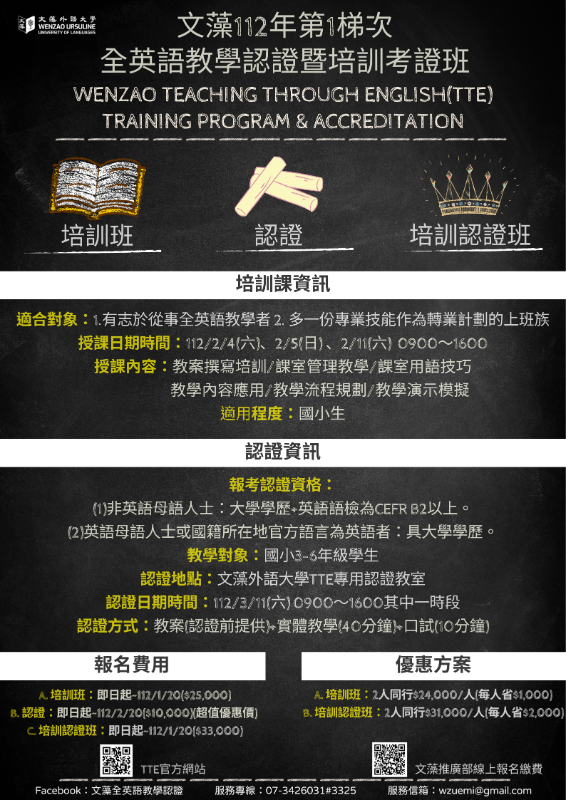 轉知:文藻外語大學開辦全英語教學認證(TTE)暨培訓課程 |