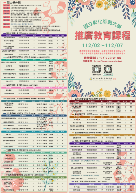 轉知:彰化師範大學112年2月-7月推廣教育課程招生簡章
