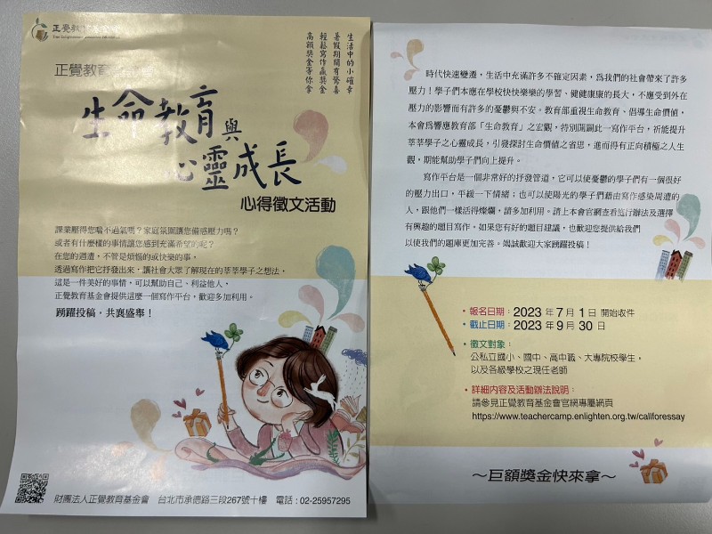 轉知:正覺基金會-生命教育與心靈成長-心得徵文活動