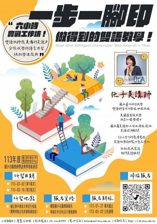 | 標題 | 轉知:臺中教育大學雙語教學研究中心辦理「113年度國小在職教師雙語教學增能研習」 |