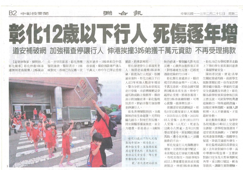 為避免交通事故發生,強化交通安全教育宣導,深化學生安全觀念。 |