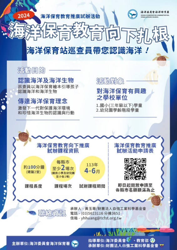 海洋委員會海洋保育署舉辦「2024年海洋保育教育向 下扎根-海洋保育站巡查員帶您認識海洋」試辦教學活動