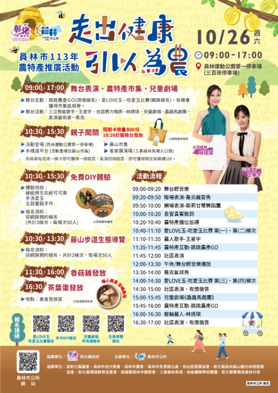 | 標題 | 轉知:員林市公所辦理「員林市113年走出健康引以為農 農特產推廣活動」,鼓勵踴躍參加。 |