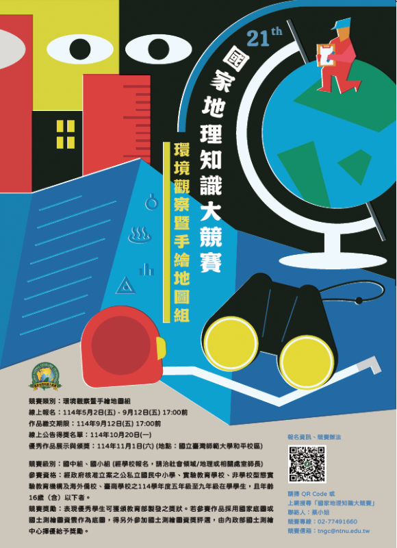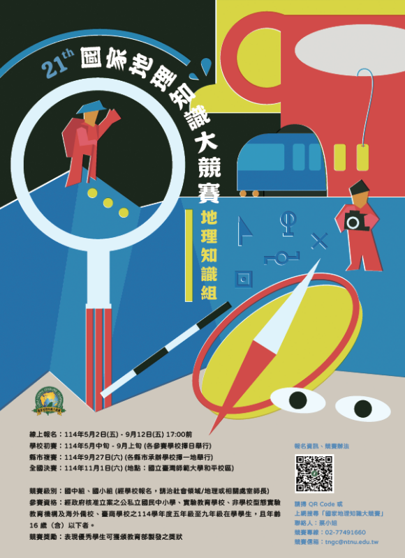 | 標題 | 轉知:有關教育部國民及學前教育署補助中華民國地理學會辦理114年第21屆國家地理知識大競賽之競賽辦法1份 |