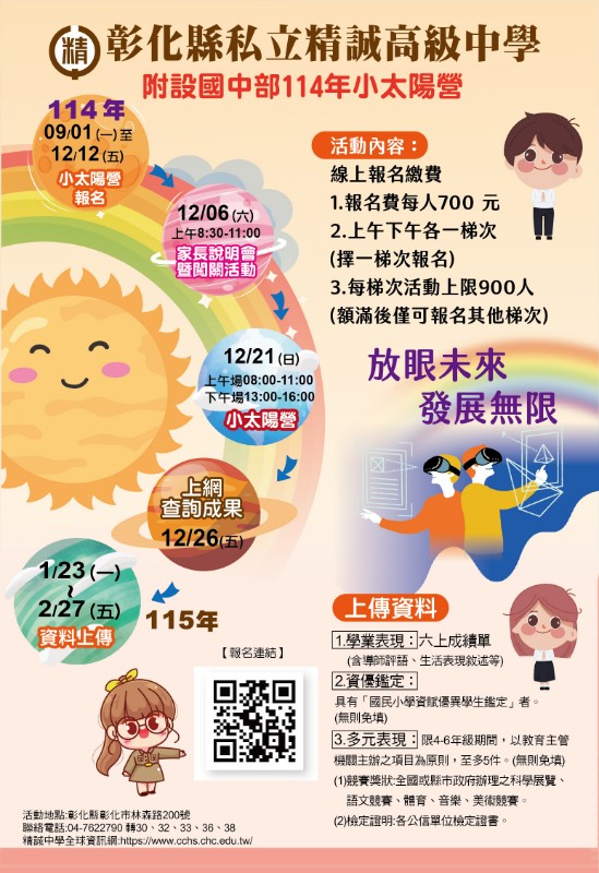 轉知:精誠中學辦理六年級學生114年小太陽營