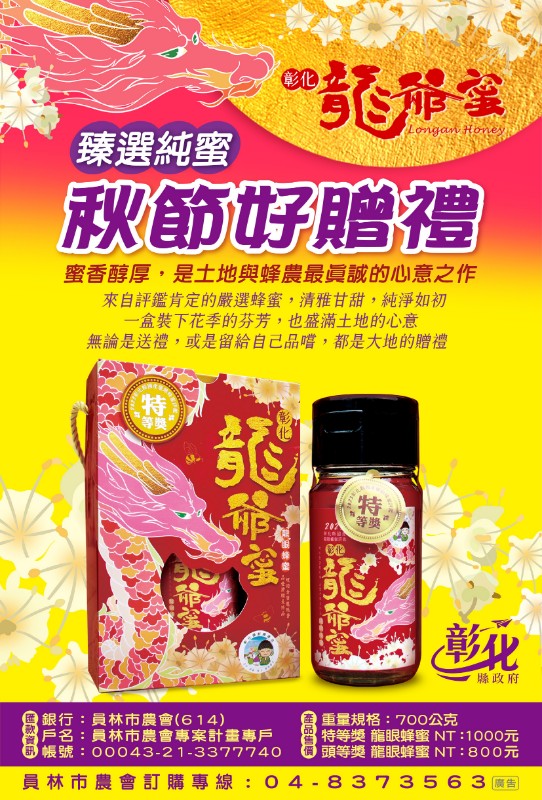 檢送本縣114年度評鑑得獎優質農產品(洋香瓜、紅龍果、津翠番石榴及龍爺蜜)訂購資訊各1份,惠請協助轉知並踴躍訂購,請查照。 說明: 一、本縣114年度優質果品評鑑競賽依據外觀、重量、風味及儀器檢測的糖度等項目進行嚴格品評,參賽果品皆為本縣自行栽植生產並通過農藥檢驗合格,兼具品質及安全。 二、本縣114年度『龍爺蜜』國產龍眼蜂蜜品質評鑑競賽,依據無抗生素及農藥殘留者檢測及色澤、香氣、風味嚴謹評選,蜂蜜品質純正有保障,且一桶得獎蜂蜜只能分裝400瓶,數量有限。 三、目前正值農產品產期,適逢中秋佳節,搭配精心設計的評鑑禮盒,送禮好看大方,歡迎向各農會踴躍訂購。檢附訂購資訊供參。