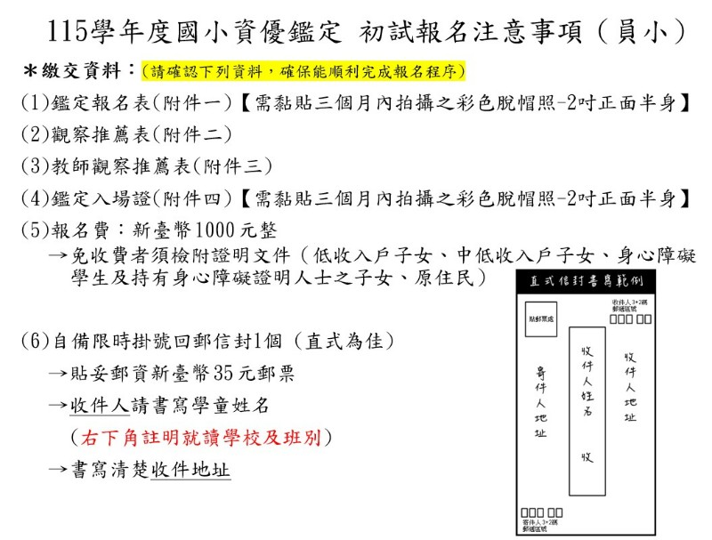 | 標題 | ☆轉知:彰化縣115學年度國民小學一般智能資賦優異學生鑑定簡章☆ |
