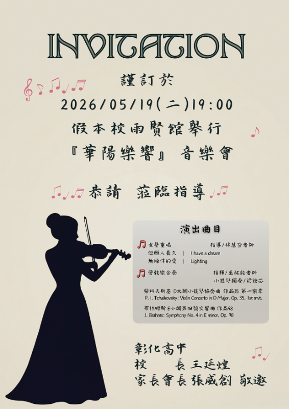 | 標題 | 轉知:2026彰化高中音樂班年度公演-「華陽樂響」音樂會 |