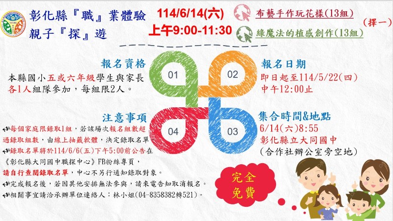 113學年度彰化縣『職』業體驗 親子『探』遊 活動報名資訊公告