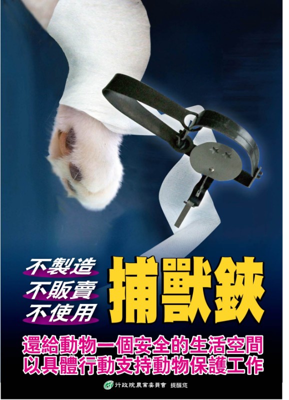為防止傷害動物,建構全民友善動物環境,請貴單位協助加強學校宣導,依動物保護法規定,不得使用獸鋏捕捉動物,且任何人不得製造、販賣、陳列或輸出入獸鋏,違者處新臺幣1萬5,000元以上7萬5,000元以下罰鍰。 |
