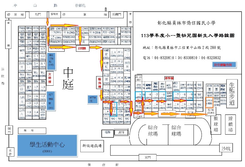 親愛的家長: 恭喜您的寶貝成為國小新鮮人,小學是人生起步的一個重要的階段,看著孩子穿起了制服、背起了書包,想必您的心中也不禁燃起孩子長大了的喜悅。 為了讓孩子盡早適應新的學習環境,增進家長的溝通聯繫,並加強推行家長親職教育知能,以培養良好的親子關係,歡迎爸爸、媽媽,阿公、阿嬤陪著孩子一起來參加! 一、時間:113年8月30日(星期五) 二、地點:各班教室及活動中心 三、程序:(當天還有打卡按讚送獎卡活動) 四、寶貝的班級請查閱本校網站小一編班公告。 五、教室位置: 六、8/30(五)、9/2(一),這兩天會帶便當回家吃,12:00放學。9/3(二)之後均在校用餐,請幫寶貝們準備好餐具。 七、9/3以後小一新生除星期二整天課,16:00放學外,其他天均為半天課,在學校用完餐,12:40統一放學。 八、113學年度於113/09/20(五)晚上召開班親會,請合夥人撥冗參加,與級任老師進行最直接的溝通。