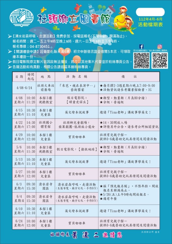 本鄉立圖書館辦理「112年4月-6月活動檔期」文宣1 份。