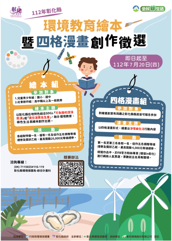 「彰化縣112年度環境教育繪本創作暨四格漫畫徵選」自即日起至112年7月20日止接受各界報名,鼓勵師生踴躍參加。