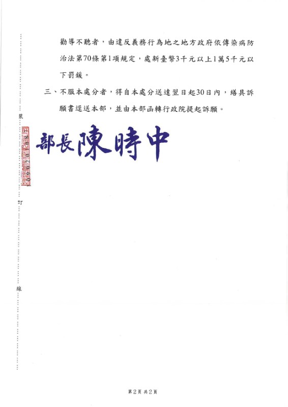 轉知「為防治嚴重特殊傳染性肺炎,自即日起至中華民國110年2月28日止,參加大型集會活動之民眾應全程佩戴口罩並遵守飲食規定」公告1份。
