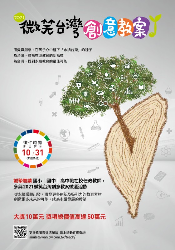 天下雜誌特辦理「微笑台灣‧創意教案」2021徵選活動,鼓勵教師踴躍參加。