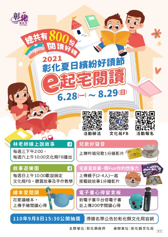 彰化縣文化局辦理「2021彰化夏日繽紛好讀節~E起宅閱讀」活 動實施計畫、EDM各乙份,請查照。