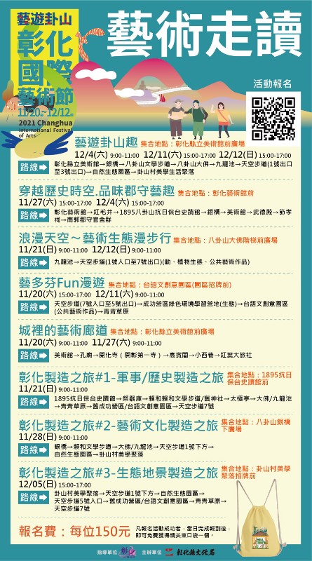 彰化縣文化局於11月20日至12月12日辦理「2021彰化國際藝術節」 系列活動-「藝術走讀」輕旅行活動,請學生踴躍參加。