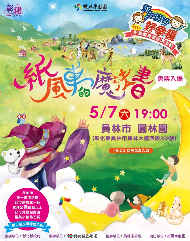 因應疫情嚴峻,彰化縣文化局5月8日於田尾國小活動中心辦理之「彰化囝仔好幸福─111年兒童劇鄉鎮巡演活動」延期演出。