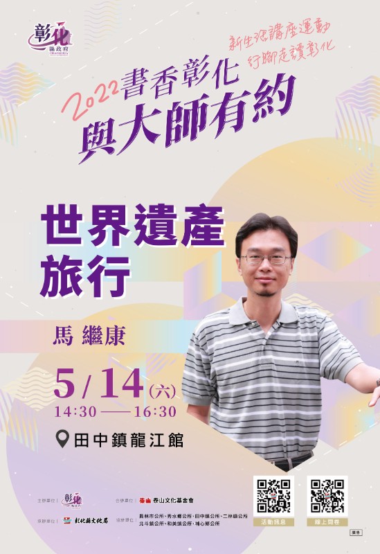 彰化縣文化局訂於111年5月14日辦理2022「書香彰化─與大師有約」專題講座第5場次,請所屬同仁、師生踴躍參加。