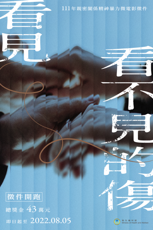 轉知衛生福利部「111年親密關係精神暴力微電影徵件活動」簡章及海報各1份,徵件活動採線上報名,請踴躍參加。
