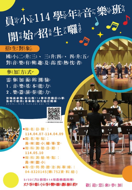 員林藝術才能音樂班114學年招生鑑定考試,歡迎對音樂有興趣的學生報名。