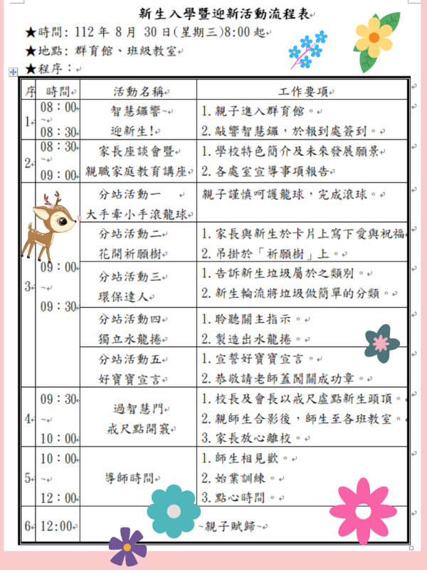 二水國小112學年度新生入學暨迎新活動流程