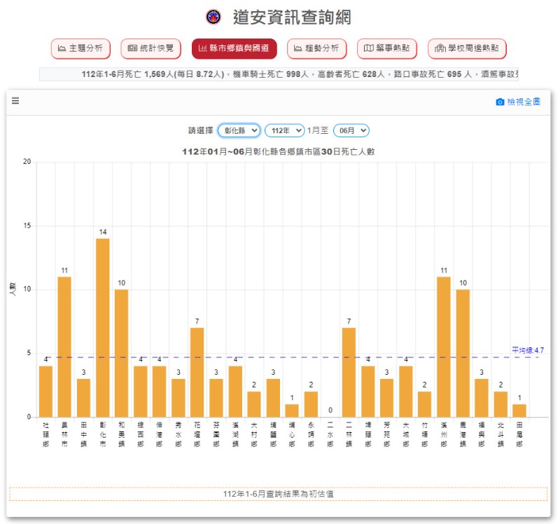 彰化縣112年01-06月交通安全道安資訊相關消息