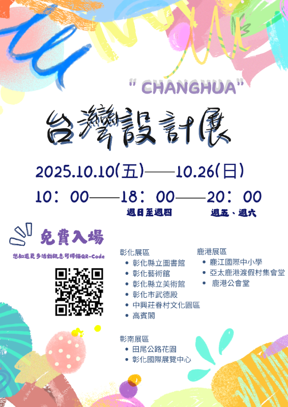 彰化縣長王惠美、台灣設計研究院院長張基義、總策展人劉真蓉、主視覺設計師聶永真📣共同暢談如何以設計思維重新詮釋彰化,翻轉既有印象🗓️10/10-10/26(免費入場),誠摯邀請大家走進彰化👣親身感受設計如何點亮城市💡讓街道、產業與生活故事都成為展品一同見證這座三百年古城的嶄新風貌 ✨立即了解 👉 https://ppt.cc/fkD0ox詳細活動資訊可至網頁閱覽👉 https://designexpo.org.tw/designexpo/zh-TW