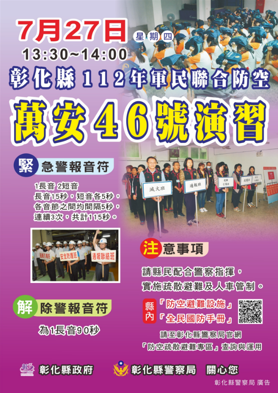 | 標題 | 112年軍民聯合防空(萬安46號)演習 |