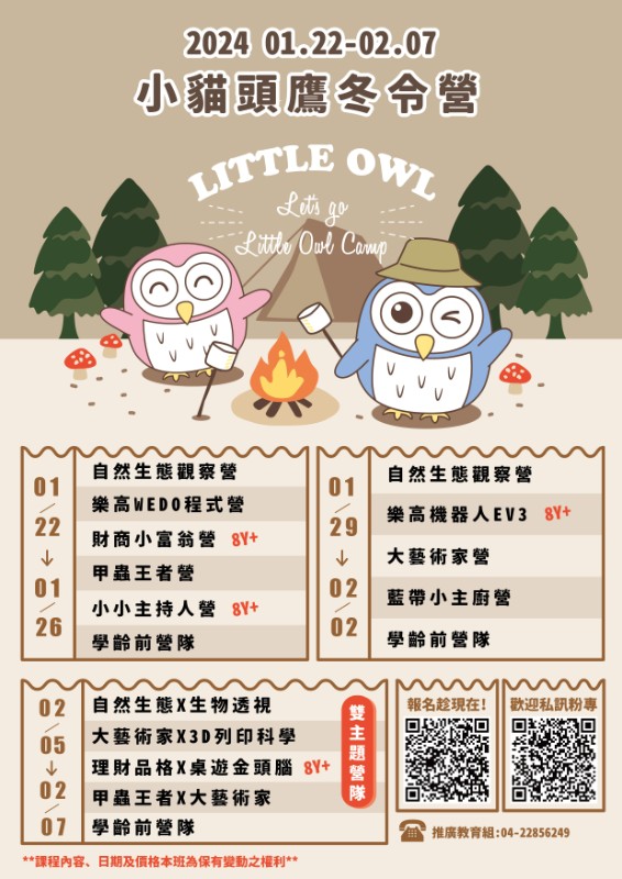 轉知~中興大學推廣教育辦理「2024小貓頭鷹冬令營」活動 |