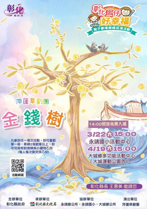 | 標題 | 彰化縣文化局辦理「彰化囡仔好幸福—114年親子劇場鄉鎮巡演活動」萍蓬草劇團《金錢樹》演出 |
