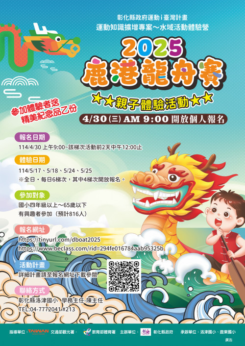 彰化縣政府辦理「2025鹿港慶端陽系列活動-國際龍舟錦標賽」親子體驗活動,歡迎民眾踴躍報名參加。