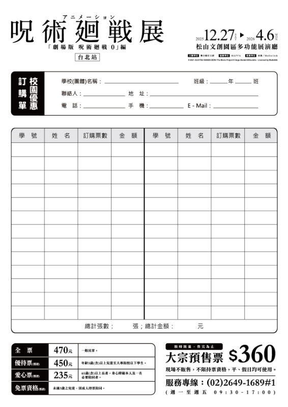 風靡全亞洲的超人氣動漫作品《咒術迴戰》,憑藉其獨特的世界觀和極具特色的人物角色設定,迅速吸引大量粉絲喜愛,繼漫畫熱銷破億、動畫橫掃各大獎項、《劇場版咒術迴戰0》締造票房佳績後,再度以沉浸式展覽席捲亞洲!今年12月「咒術迴戰展《劇場版咒術迴戰0》篇」將完整重現劇場版的熱血場景與角色魅力,除了可近距離欣賞劇場版的珍貴幕後創作資料、「最強咒術師」五條悟1:1模型與多款咒具神還原展示,更特別的是展覽加碼展出動畫第1季與第2季「懷玉・玉折」篇的精彩內容,同時也邀請到日本知名水墨畫家こうじょう雅之(Kojo_masayuki),以獨樹一幟的筆墨技法重新詮釋角色風貌,帶來與動畫、漫畫截然不同的視覺震撼體驗。透過展覽,學生們不僅能夠欣賞到動畫中的精彩場景與美術技術,還能深入探討劇情中的各角色及事件衍生的情感、倫理及人性議題,藉此也能進一步探討東方文化符號的象徵與現今社會日益重要的情緒管理學習,適合規劃為一場融合動畫藝術、文化深度的跨領域學習體驗活動。 |