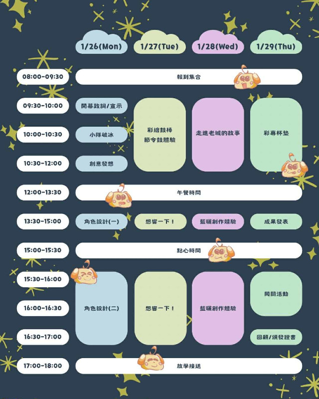 營隊日期:2026/01/26(一)~2026/01/29(四) |